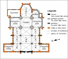 | Autres campagnes de travaux | 1re moitié XIIe siècle (portail) ; XVIe siècle (voûtes de la nef et des bas-côtés) ; 1837(chœur, deux chapelles) | ||