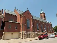L'église est conçue selon les dessins de l'architecte de Dubuque, John Keenan, dans le style néo-gothique. Elle est bâtie en briques sur des fondations de pierre[2]. Elle présente une tour centrale en façade, surmontée d'un lanternon. L'entrée principale a été modifiée, mais s'accorde avec l'ensemble. Sept baies de chaque côté éclairent l'édifice, la septième au sud et au nord formant une sorte de transept. Elles sont divisées par des contreforts de briques et chacune contient une paire de fenêtres à lancette. L'intérieur possède trois nefs.