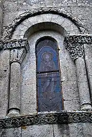 Le chapiteau occidental de la fenêtre est orné des feuillages entrelacés.