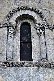 Les chapiteaux des fenêtres et des arcatures aveugles sont tous sculptés. Les sculptures figurées sont toutes au sud. Les autres chapiteaux portent des décorations végétales.