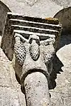 Les deux chapiteaux de la baie nord-est, qui sont romans, ont une décoration de feuillage au sud-est et un entrelacs de sarments au nord-ouest.