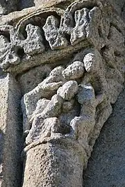 On trouve également neuf chapiteaux soutenant la corniche, avec décor végétal.