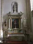Autel du Saint-Sacrement dans la chapelle de la Vierge. À gauche de l'autel, statue de sainte Marie-Madeleine et à droite, statue de sainte Marguerite d'Antioche.
