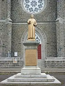 Faisant face à l'église de l'autre côté de la rue, il y a une statue du Sacré-Cœur de Jésus-Christ[5]. Devant la façade de l'église, il y a une statue de Pierre Brillant, le « Père de la Vallée ». Celle-ci comprend trois plaques : une pour les missionnaires et les curés de la vallée, une pour les pionniers de la vallé et une en hommage à Pierre Brillant[6]. Dans la cour entre l'église et le presbytère, il y a une statue de Notre-Dame à l'Enfant-Jésus[7].