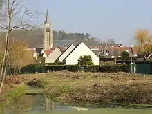 Vue sur l'église depuis le parc municipal.