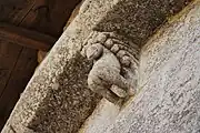 Les modillons sous la corniche sont assez rustiques : têtes de loup ou de monstre et dessins géométriques. On ne voit pas de leçon de moralité, comme à l'accoutumée.