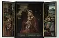 Le , furent installées deux statues composant le groupe dit de l'Annonciation, soit la Vierge et l'archange Gabriel. Ces sculptures sont attribuées au sculpteur tournaisien Jean Delemer (en). Ces deux sculptures sont en pierre blanche d'Avesnes, mesurent environ 1,80 m de haut et furent réalisées en 1428.