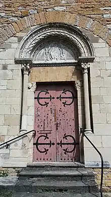 Porte de l'ancienne église insérée dans le mur latéral.