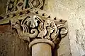 Le chapiteau et sa colonnette ne sont pas romans. Ils n'existaient pas en 1847 (d'après un dessin[4] de Léo Drouyn). Cette contrefaçon néo-romane date de la restauration du XIXe siècle.