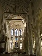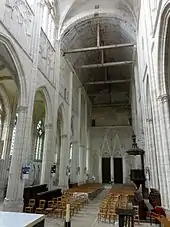 Toute la question est de savoir si la nef était achevée au moment de l'interruption du chantier : ses parties hautes sont effectivement incomplètes, avec des murs lisses à la place du triforium, absence de l'étage de fenêtres hautes, et absence de voûtes.