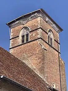 Le clocher sans son toit à la suite de l'incendie de 2020.