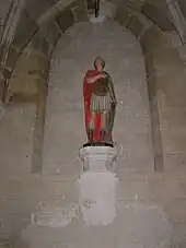 - La chapelle Saint-Victor est située près du chœur sur le bas côté gauche. Saint Victor est représenté par une statue anonyme en plâtre polychrome du XIXe siècle placée sur un cul-de-lampe. Il est dans une tenue de soldat romain, debout appuyé sur un bouclier, il tient dans sa main droite une croix, signe de son appartenance à la communauté chrétienne. La bénédiction de la chapelle a eu lieu le par l'abbé Maxime Caron, supérieur du petit séminaire de Versailles[12].