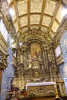 À l'intérieur, le chœur est somptueusement décoré par Carlos Amarante. L'orgue date de 1769. Les azulejos recouvrant les parois remontent à 1873.