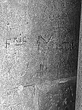 Enfin, dans la nef centrale, haute de douze mètres et datant du XIIe siècle, on peut observer sur un pilier une pierre tombale dressée. Elle figure un personnage dans une position de prière, à genoux et les mains jointes. Le style est médiéval et une date y figure : , mort du défunt représenté. Le texte en latin de l'Ave Maria fait le tour de la pierre.