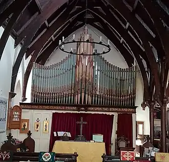 L'orgue fut installé en 1894. Sa façade est peinte selon la tradition anglaise victorienne ; la composition des jeux est elle aussi typique de la tradition anglaise, bien adaptée pour accompagner les hymnes anglicans.