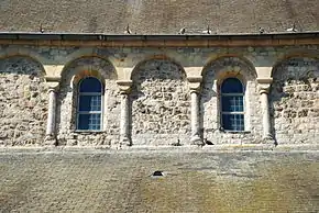 Colonne engagée à chapiteau cubique décorant les parois de la nef