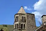 Le chœur de l'église est logé dans une deuxième tour semi-circulaire portant mâchicoulis, autre élément de l'ancien château. Cette tour est probablement à l’origine du nom du village.