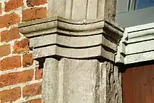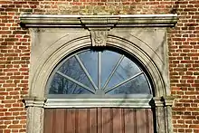 À l'ouest, l'église présente une tour carrée de style classique[1] cantonnée de puissants chaînages d'angle en pierre bleue. Au rez-de-chaussée, la tour est percée d'un portail de style classique aux piédroits moulurés dont les impostes portent un arc en plein cintre dont la clé est orné d'une marguerite. Cet arc mouluré, dont les écoinçons affichent le millésime de 1784[1], encadre une fenêtre d'imposte au motif rayonnant et est surmonté d'un petit entablement.