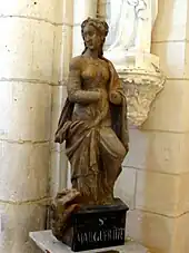 • L'on ne dispose pas de renseignements sur l'autre statue de sainte Marguerite, qui semble être en terre cuite, et qui est peinte en faux-bois.