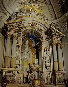 L'édifice, d'une grande sobriété, est surtout remarquable pour le retable monumental qui occupe le chœur, inspiré du tableau de Jacques Van Oost dit le Jeune, L’Enfant Jésus tendant les bras à la croix offerte par le Père, que l'on peut voir dans l'église Saint-André.
