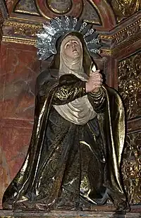 En 1577, le prieur du couvent a commandé un retable pour l'autel majeur réalisé par Juan Bautista Vázquez "le Vieux" et Miguel d'Adán, qui est resté dans l'édifice jusqu'en 1700 environ [12]. L'actuel retable majeur peut se dater entre 1709 , date de finalisation des œuvres, et 1724, année de sa consécration[13]. Il est attribué à Leonardo de Figueroa [23] et à Pedro Duque Cornejo [14]. Il constitue un retable de grandes proportions, le second plus grand de la ville, après celui de la cathédrale. Il fait 160 m² et dix-huit mètres de haut[13].