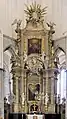 Elle abrite de nombreuses œuvres remarquables, dont une horloge astronomique, des fonts baptismaux en bronze de 1290 et des orgues baroques de 1770.