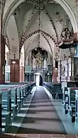 La voûte et le clocher attenant à l'extrémité ouest ont subi des transformations depuis le Moyen Âge. La salle de l'église à trois nefs comporte cinq traverses couvertes de voûtes croisées La nef compte trois vaisseaux couverts de croisée d'ogives et de voûtes en étoile.