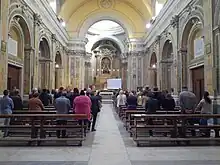 L'intérieur présente un décor précieux original avec par exemple des Anges d'Angelo Viva, un tableau représentant Le Père éternel de Giuseppe Sanmartino, le maître-autel de marbre étant de Gaetano Barba. On remarque deux statues de bois figurant la Sainte Vierge et Saint Joseph. Ce sont deux copies d'œuvres originales de Giovanni da Nola conservées aujourd'hui pour raisons de sécurité au musée San Martino de Naples. L'église possède des tableaux intéressants du XVIIe et du XVIIIe siècle et une Vierge du Carmel de Girolamo Imparato.