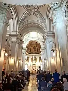 Le maître-autel est surmonté d'une statue de saint Pascal (canonisé en 1690), patron de l'église. L'abside est décorée de mosaïques. L'église conserve des tableaux de Giacinto Diano, Antonio Sarnelli ou encore de Giovanni Battista Beinaschi.