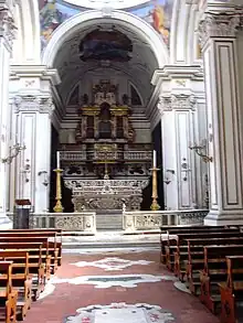 Le maître-autel de marbre et de pierres dures est l'œuvre de Dionisio Lazzari en 1656. Les fresques du xviiie siècle du transept sont de Belisario Corenzio. La cinquième chapelle de gauche abrite un tableau de Luca Giordano figurant Saint Paul et saint Humbert[3].