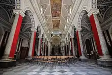 Construit en style baroque, l'intérieur comporte trois nefs[2]. Dans la nef de gauche se trouve le reliquaire en argent de saint Alphius.
