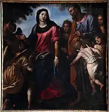 Le peintre Giacomo del Po a exécuté au début du XVIIIe siècle les deux grandes toiles placées sur les côtés de la croix du transept (la Bataille de Prague et la Fuite en Égypte) et quelques faux cadres scénographiques représentant des Vertus et des Anges, placés comme ornement architectural des peintures elles-mêmes.