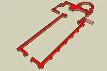 Le mur nord de l'église et le tripot (Extérieur gauche)