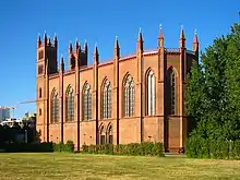 L'église est construite entre 1824 et 1830 par Schinkel. C'est la première église néogothique à être construite à Berlin. Schinkel avait présenté aussi un projet d'édifice néoclassique, en forme de temple romain, mais c'est celui-là qui fut préféré, sous l'influence du mouvement néogothique anglais. Son architecture fait référence au style gothique de brique très typique de l'architecture médiévale d'Allemagne du Nord, mais elle fait aussi référence au gothique méridional français également en brique, comme la cathédrale d'Albi par son plan, son agencement et son élévation intérieure, mais aussi par sa toiture invisible, fort éloignée des canons du gothique allemand. Le maître d'œuvre est Ludwig Ferdinand Hesse. L'église est construite en briques rouges avec des décorations de terre cuite. Elle est consacrée le .