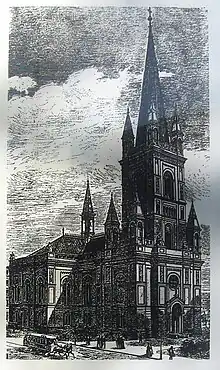 L'église de Jérusalem est mentionnée pour la première fois en 1484 sous le nom de Capelle Hierusalem. Un citoyen berlinois du nom de Müller a fait don de la chapelle, qui se trouve encore à l'extérieur de la ville, en souvenir de son pèlerinage à Jérusalem et l'a dédie à Saint-Marie, Saint-Sébastien et Saint-Fabien. En 1679, le conseiller du prince électeur von Martitz fait une fondation supplémentaire pour la construction d'un petit hôpital pour veuves et fait agrandir la chapelle en 1687-1689 par Giovanni Simonetti (de) en 1687-1689. En 1725-1731, une nouvelle construction est érigée d'après les plans de Philipp Gerlach. Comme l'église est désormais devenue le lieu de culte le plus important pour les habitants de Friedrichstadt, luthériens que calvinistes, l'église s'appelle désormais «l'église de Friedrichstadt». En 1747, la partie supérieure de la tour, construite en bois mais mal réalisée, doit être démontée et remplacée par un toit de fortune. En 1836, Friedrich Wilhelm Langerhans rénove l'édifice, dont les plans sont mis en œuvre par Carl Scheppig (de), élève de Schinkel et son chef de chantier. Ce n'est qu'en 1838 que l'église est à nouveau dotée d'une flèche élancée, dessinée par Karl Friedrich Schinkel. En 1875, l'église est fermée pour cause de délabrement. Edmund Knoblauch (de) (1841-1883)[1] donne à l'église sa dernière forme de 1878 à 1879. En raison de l'expansion du quartier des journaux et du départ de la population résidente, le nombre de paroissiens diminue rapidement et les 1366 places assises ne peuvent bientôt plus être remplies. En 1941, l'église est vendue à l'Église orthodoxe roumaine de Berlin.