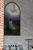 - Le retable représentant Christ à Gethsémani est peint par Elin Danielson-Gambogi.