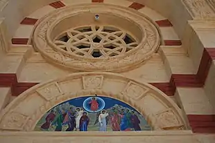 L'édifice s'inscrit dans un plan tréflé. La nef est précédée d'un narthex qui, à l'extérieur, est surmonté par un clocher, et elle est prolongée par une abside à cinq pans qui prend la forme d'une abside demi-circulaire à l'extérieur ; la partie centrale de la nef est dominée par une coupole reposant sur quatre piliers massifs. De part et d'autre de l'autel se trouvent deux chapelles, l'une servant pour la proscomidie, l'autre pour le diakonikon, toutes les deux formant des saillies sur les façades latérales[2]. Les façades elles-mêmes sont rythmées horizontalement par des bandes alternées rouges et jaunes et par des corniches ; sur le plan vertical, les ouvertures sont inscrites dans un jeu d'arcades et surmontées de petites rosaces. La façade occidentale n'est pas dotée d'une décoration particulière par rapport aux autres façades, à l'exception d'une lunette avec une représentation de l'Ascension au-dessus du portail[2].