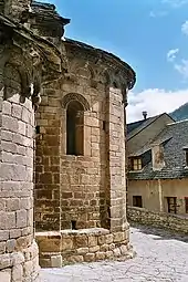 L'église possède un chevet roman lombard asymétrique composé d'une abside semi-circulaire flanquée d'une seule absidiole d'époque romane.
