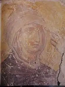 Il reste un sujet religieux dans ces peintures qui est la représentation des saints : sur les murs ouest est représentée la scène de l'apparition de l'ange à Pacôme le Grand, sur les piliers des côtés ouest : Éphrem le Syrien et Sabas le Sanctifié.