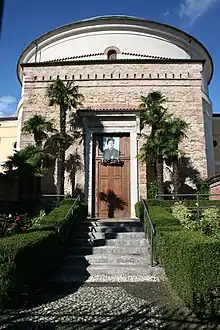 L'église de la Sainte-Famille est précédée d'un petit jardin bordé d'une porte en fer battu. Le bâtiment, inspiré, même dans ses proportions, du Panthéon de Rome, a un plan central et est surmonté d'une coupole recouverte de cuivre ; sur les côtés, les corps à deux étages de la structure conventuelle se développent symétriquement, ponctués de fenêtres rectangulaires surmontées d'un fronton cintré abaissé. La façade inachevée est à l'état brut avec des tessons et des pierres apparentes où se détachent les deux niches destinées au placement de statues à côté du portail d'entrée, mais qui sont toujours restées vides: précédé d'un atrium classique, qui n'a jamais été construit.