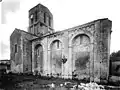Le clocher, tour carrée à toit presque plat, est couvert d'une coupole sur trompes. La nef a été pratiquement entièrement reconstruite. La façade, moderne, s'élève sur les bases de fortes colonnes romanes.