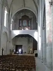 L'église présente un plan à nef unique avec des chapelles latérales peu profondes. La nef possède un arc triomphal qui la sépare du chœur avec des passages berrichons latéraux et elle est surmontée d'une voûte à trois travées et demie renforcées par des nervures irrégulières. Elle présente également la particularité d'avoir des clés de voûte toutes différentes : la plus remarquable étant celle du milieu, désignée comme une clé de « voûte suspendue ». Cet ensemble architectural relève du style appelé « premier gothique angevin ».