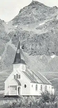Cette église norvégienne typique est l'une des églises les plus au sud de la planète. En 1922, un service funéraire est conduit pour sir Ernest Shackleton dans l'église avant qu'il ne soit enterré dans le cimetière de l'église, aux côtés de 64 autres baleiniers[2]. Le cimetière, situé à environ 700 m au sud de l'autre côté du port de Grytviken, possède également des tombes vides pour les chasseurs de baleines morts en mer[3].
