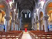 Initialement dotée d'un choeur perpendiculaire pour les frères et d'une sacristie, le chœur fut détruit par un bombardement en 1944.