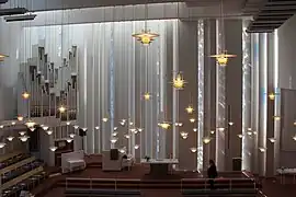 L'église est construite à l'intersection du Kehä I et de la Tuusulanväylä. La lumière est la caractéristique centrale de la nef[3]. La conception se retrouve également dans l'éclairage et la rangée verticale de fenêtres. Une chapelle pour enfants est reliée à l'église[3].