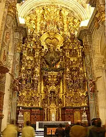 - Retable Majeur. De style baroque, réalisé par Cayetano de Acosta entre 1770 et 1779, il est situé au fond du chœur ; il représente la Transfiguration. La chapelle majeure, surmontée d'une voûte hémisphérique et décorée de peintures murales, est l'œuvre de Juan de Espinal[7] ;