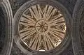 Elle a un plan en croix grecque, et conserve à l'intérieur d'intéressants tableaux des XVe et XVIe siècles et un font baptismal Renaissance.
