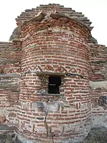Construite en brique rouge, elle est constituée d'une nef unique[2] et elle mesure 6 m de long sur 3,2 m de large[3] ; la nef est prolongée par une abside demi-circulaire[2].