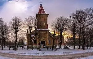 L'église a été construite en bois dans le style néo-gothique de 1873 à 1875 et consacrée le 25 mai 1875. Les paroissiens, la noblesse de Vidzeme, divers fonds de soutien et Dorothea von Hertwig ont fait des dons pour la construction de l'église. L'espace intérieur est conçu pour 400 places. Ce n'est qu'en 1920 que la paroisse a obtenu le statut de paroisse indépendante[2].