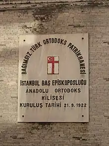 Patriarcat orthodoxe turc indépendant. Plaque indiquant la présence du Patriarcat sur l'église Notre-Dame de Caffa d'Istanbul